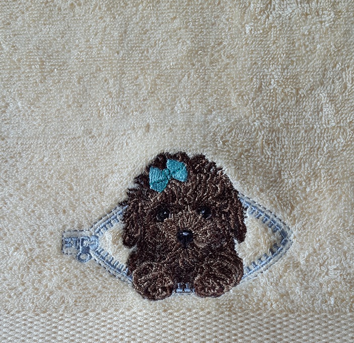 Geborduurde poedel op een gastendoekje 30×50